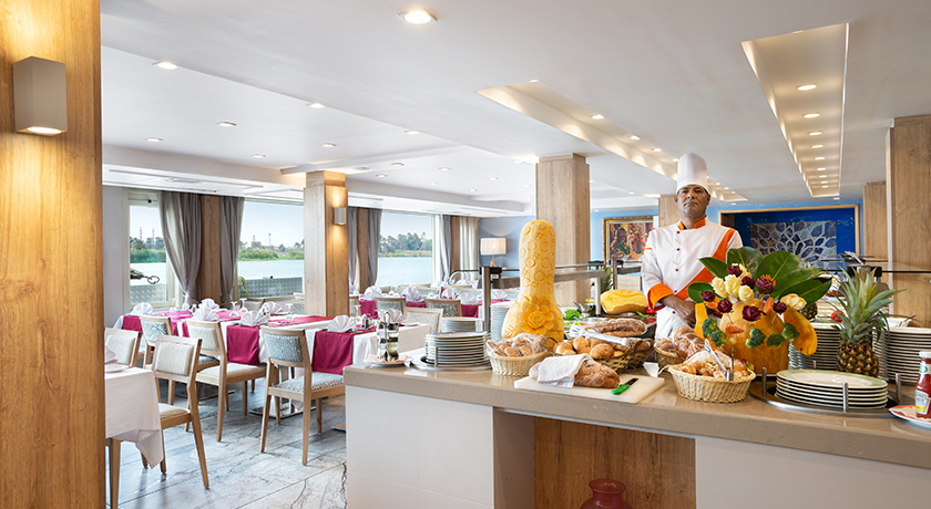 Restaurant Non-smoking restaurant is located in the main deck "Hours Deck" it opens in meals time, Food is served in Buffet, Fully air condtion with wide panoramic sealed window possibility to open